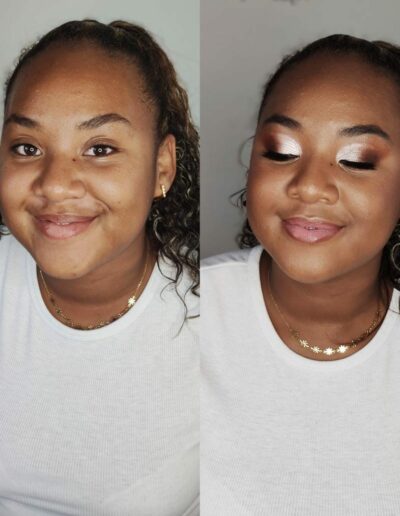Prestations : Tous les types de maquillage du nude au maquillage de jour, maquillage cocktail, attache, chignon, tresse, coiffure et maquillage mariée, séances photo.